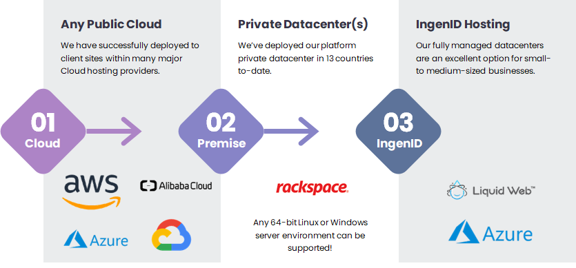 Our Docker-based technology and class-leading database allow the the IngenID One™ Platform to be deployed anywhere. And, we make it easy to migrate from one location to another.